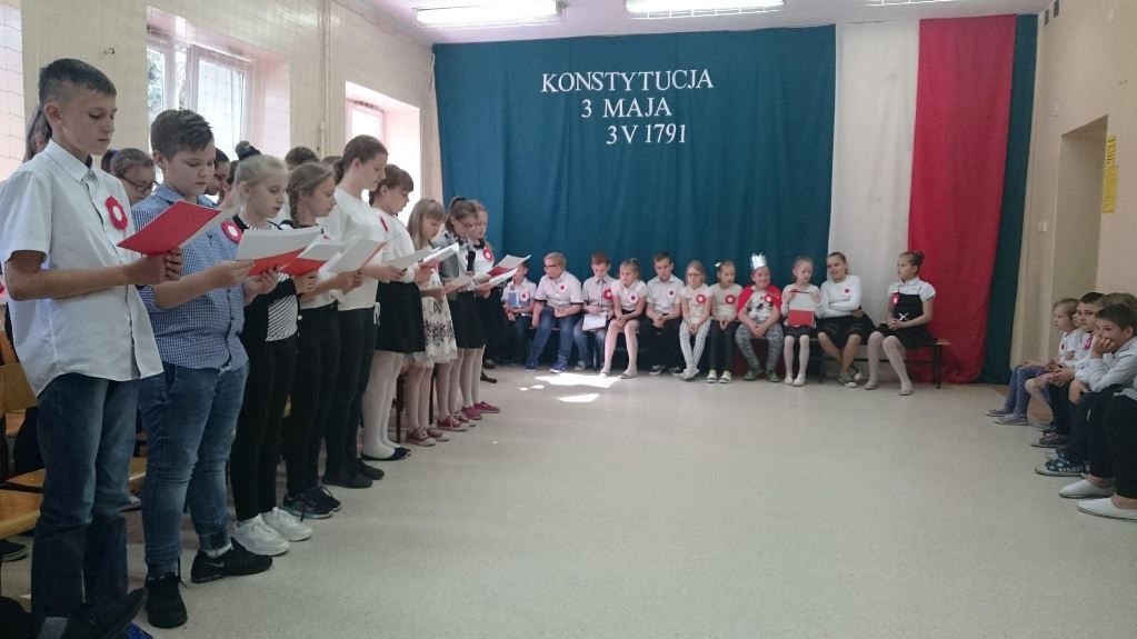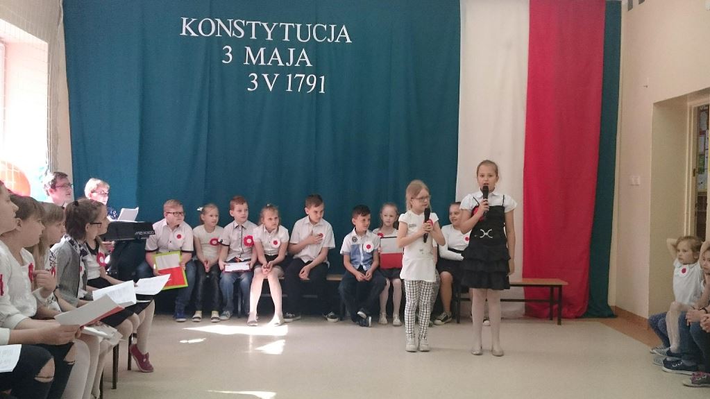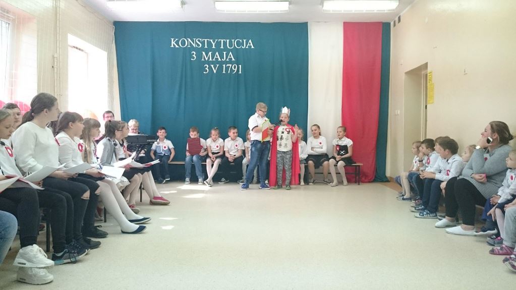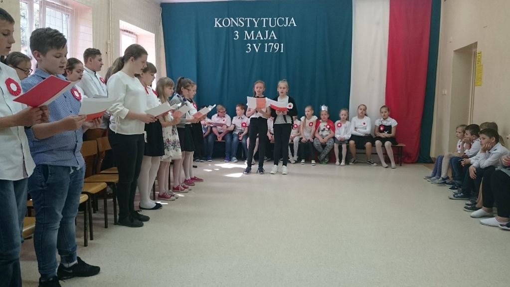 W dniu 30 kwietnia odbył się uroczysty apel z okazji 227 rocznicy uchwalenia Konstytucji 3 Maja. Część artystyczną przedstawili uczniowie klasy III. Zaprezentowali najważniejsze wydarzenia związane z obradami Sejmu Wielkiego i Konstytucją 3 Maja. Uroczystość uświetnił występ chóru szkolnego. W apelu nawiązano do poszanowania naszych symboli narodowych: flagi, godła i hymnu. Uczniowie klas IV-VII rozdawali przygotowane przez siebie kotyliony narodowe. Na zakończenie cała społeczność szkolna zatańczyła poloneza.