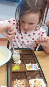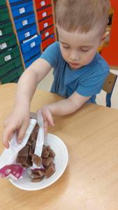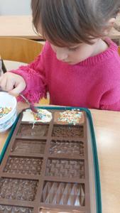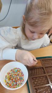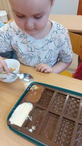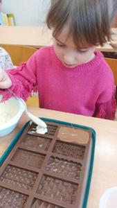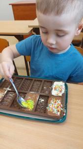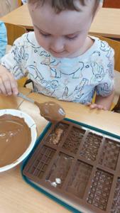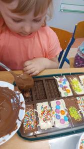 W piątek u maluszków na zajęciach było naprawdę słodko, a to za sprawą Dnia Czekolady, który przypada 12 kwietnia. Przedszkolaki poznały rodzaje czekolad, jak powstają, a także wykonały samodzielnie własną czekoladkę.