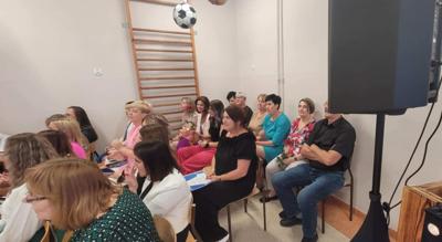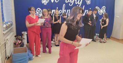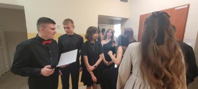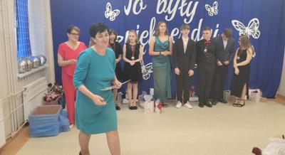 Wydarzenie miało wyjątkowy, pełen humoru charakter, który na długo zapadnie w pamięci zarówno uczniom jak i nauczycielom. Uczniowie klas 7 i 8 przygotowali wspólnie część artystyczną, podczas której w nietypowy sposób podziękowali nauczycielom – wręczając im symboliczne angaże do produkcji filmowych i telewizyjnych. W żartobliwej konwencji każdy pedagog otrzymał swoją „rolę” na miarę gwiazdy ekranu. ![]()