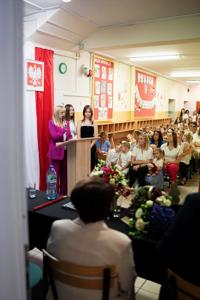 Pani Dyrektor zwróciła się do wszystkich z serdecznym przemówieniem, pełnym ciepłych słów i motywacji na nadchodzące miesiące nauki. Podkreśliła, jak ważne są wspólnota, wzajemny szacunek i otwartość na rozwój. Jej obecność wniosła nową energię i nadzieję na owocny rok pracy dydaktycznej i wychowawczej.