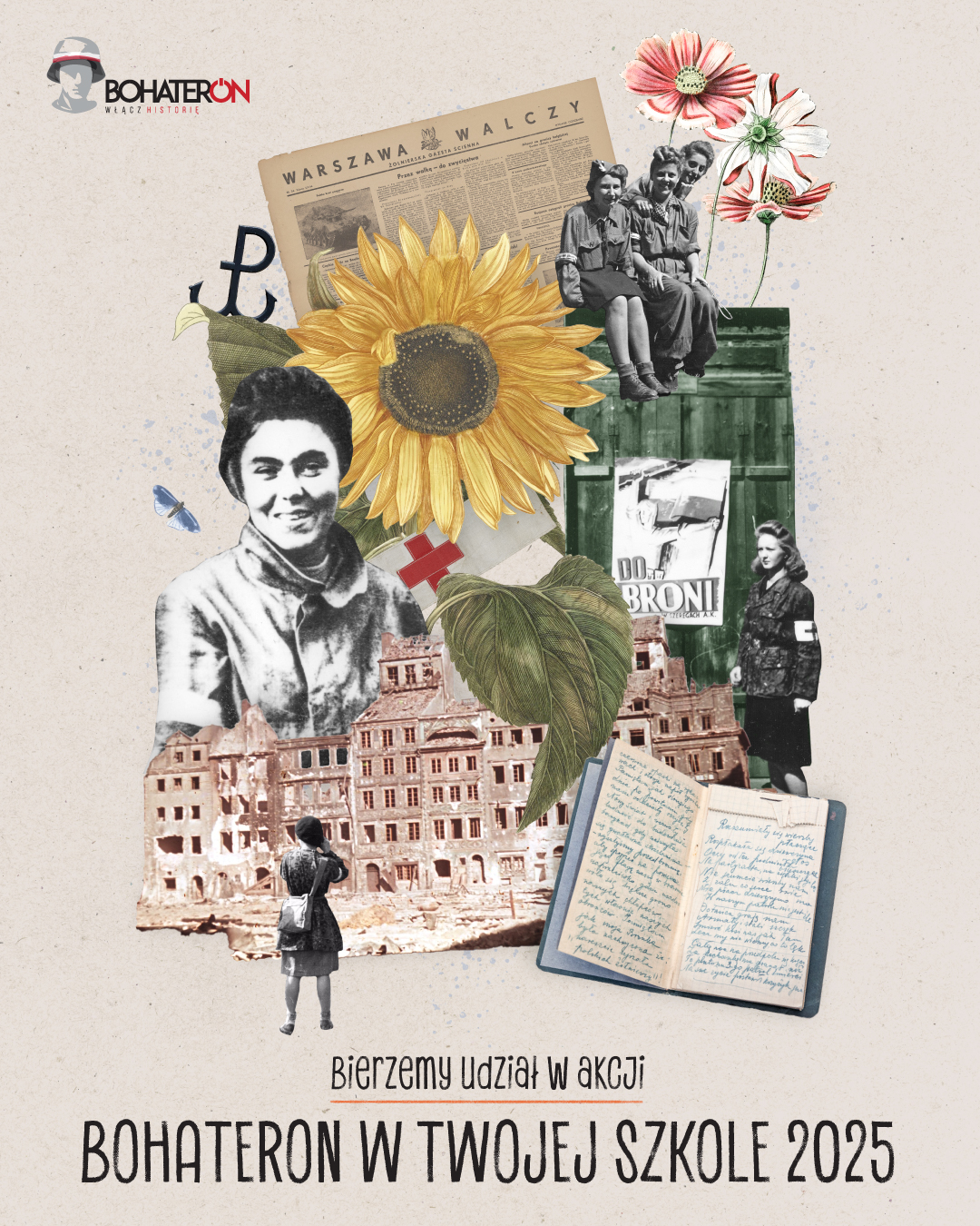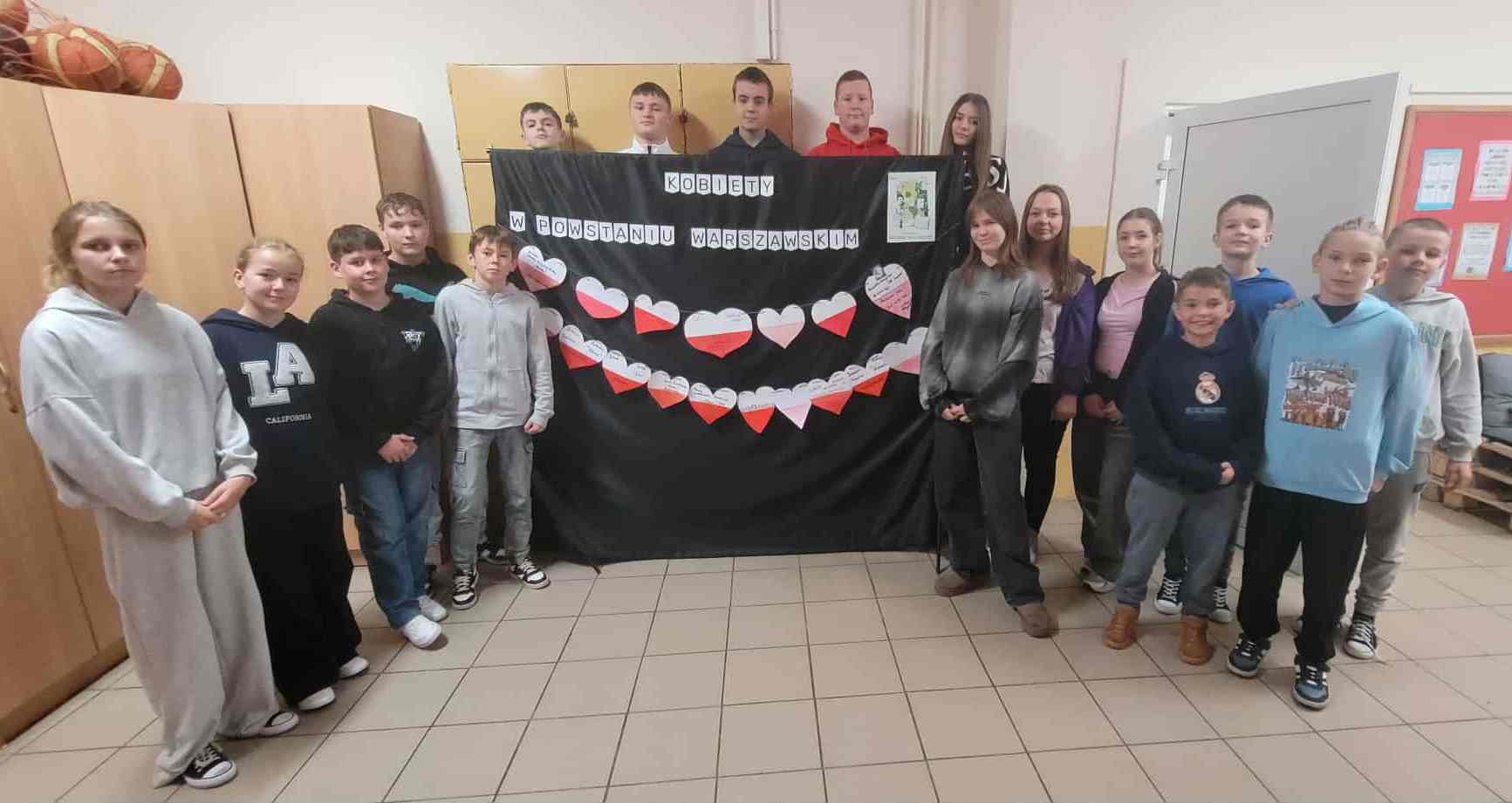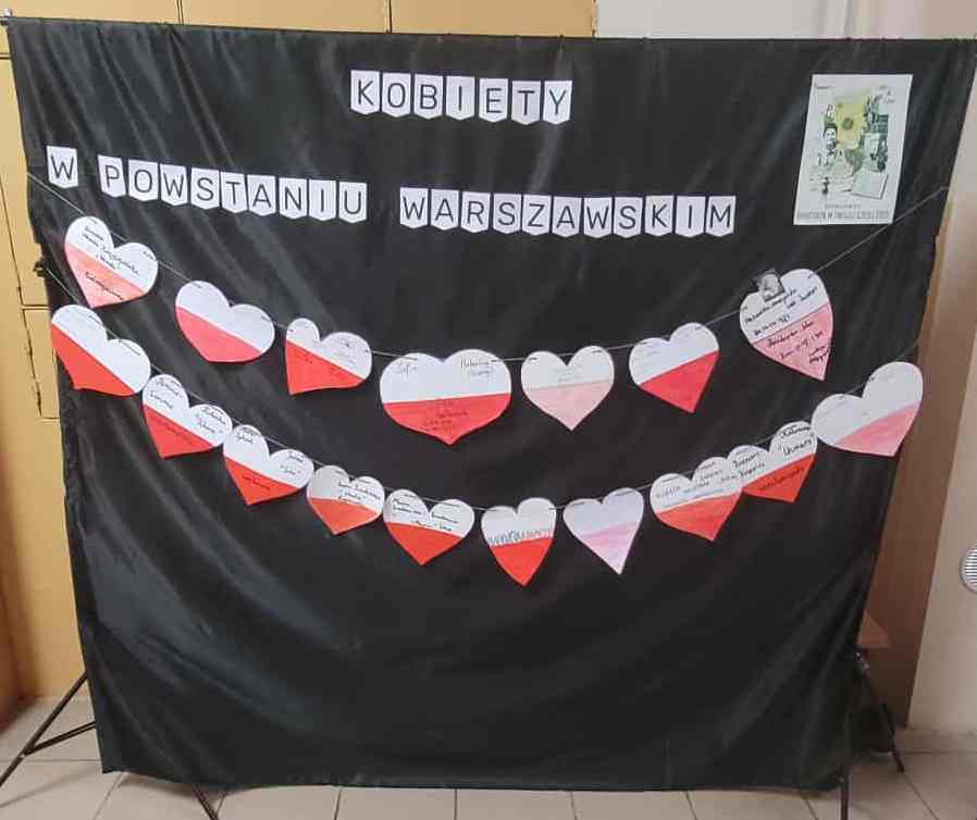 Tegoroczna edycja ogólnopolskiej akcji BohaterON w Twojej Szkole 2025 poświęcona została kobietom – uczestniczkom Powstania Warszawskiego, które odegrały niezwykle ważną rolę w jego przebiegu. W oparciu o materiały edukacyjne przeprowadzone zostały w klasach 4-8 lekcje z zakresu edukacji historyczno-patriotycznej na temat Powstania Warszawskiego. Uczniowie zapoznawali się m.in. z życiorysami kobiet – sanitariuszek, łączniczek, tworząc ,,Kartę Bohaterki”. Wykonaliśmy również ekspozycję, która miała na celu zwrócić uwagę na wyzwania, jakie podejmowały kobiety w Powstaniu Warszawskim.