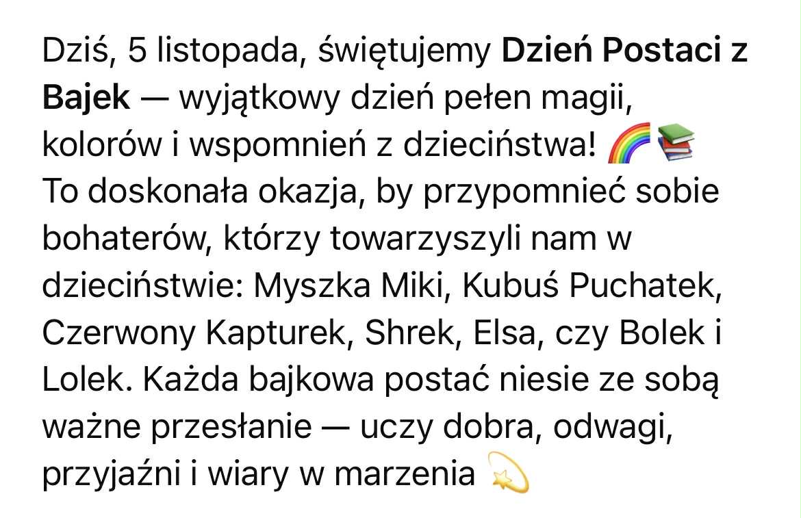 5 listopada Dzień Postaci z Bajek - Mali odkrywcy