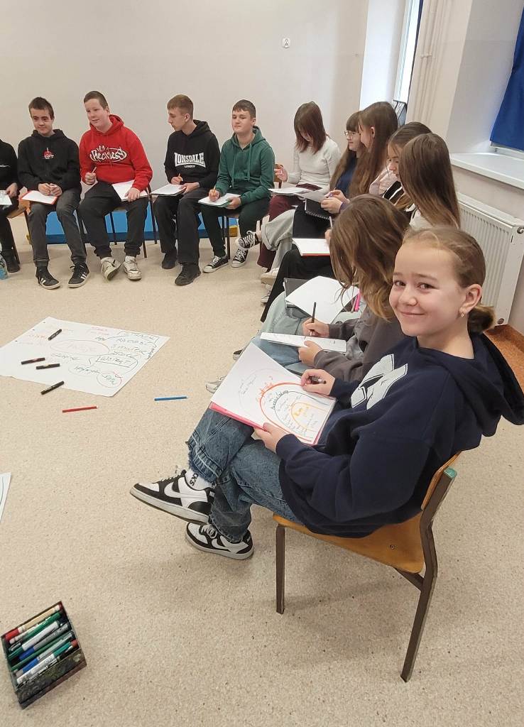Podczas spotkania zastanawialiśmy się również nad tym, co oznacza „być sobą” i dlaczego warto słuchać własnych potrzeb. Dzięki ćwiczeniom i rozmowom lepiej zrozumieliśmy, że nasze emocje są czymś naturalnym i każdy ma prawo je odczuwać.