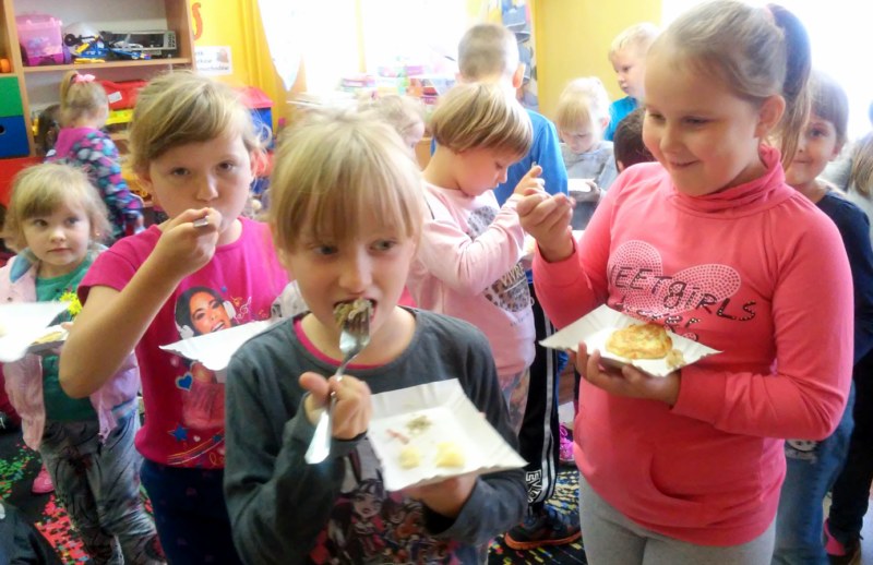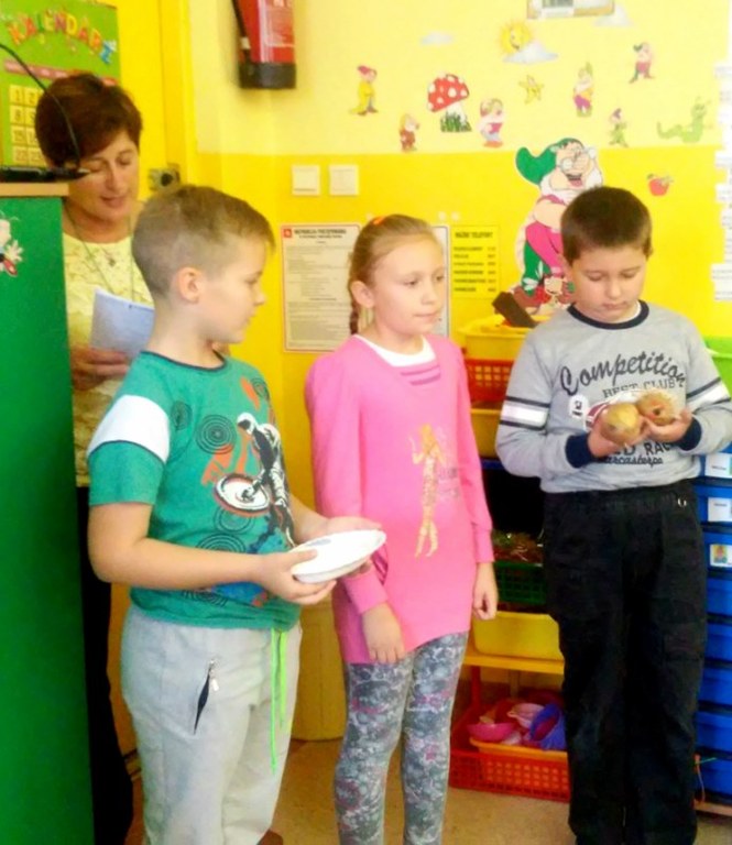 25 września w Szkole podstawowej i przedszkolu im. Tony Halika obchodziliśmy „Dzień pieczonego ziemniaka”, imprezę rozpoczęliśmy od „Bajki o ziemniaku”, która przybliżyła dzieciom historię pojawienia się tego użytecznego warzywa na naszych stołach. Oglądaliśmy prezentację i zdjęcia o ziemniaku, wysłuchaliśmy wierszy w wykonaniu uczniów z klasy III. Rodzice zaskoczyli nas ciekawymi przepisami i talentem kulinarnym. Ziemniaki ukryte były w plackach, kuleczkach, pyzach, pyrczoku i kluskach śląskich. Najbardziej wyczekiwanym momentem była oczywiście degustacja, podczas której chętni mogliśmy zagłosować na najsmaczniejsze danie. Zorganizowano wiele atrakcji dla uczniów: konkursy wiedzy o ziemniaku, zagadki oraz zabawy sportowe. Najwięcej emocji dostarczyła dzieciom konkurencja „odkopujemy ziemniaki”, polegająca na znalezieniu jak największej ilości ukrytych na boisku szkolnym ziemniaków. Ostatecznie wygrała klasa II. Święto zakończono degustacją pieczonych w ognisku ziemniaków. Organizatorem imprezy była Pani Barbara Grzybowska.