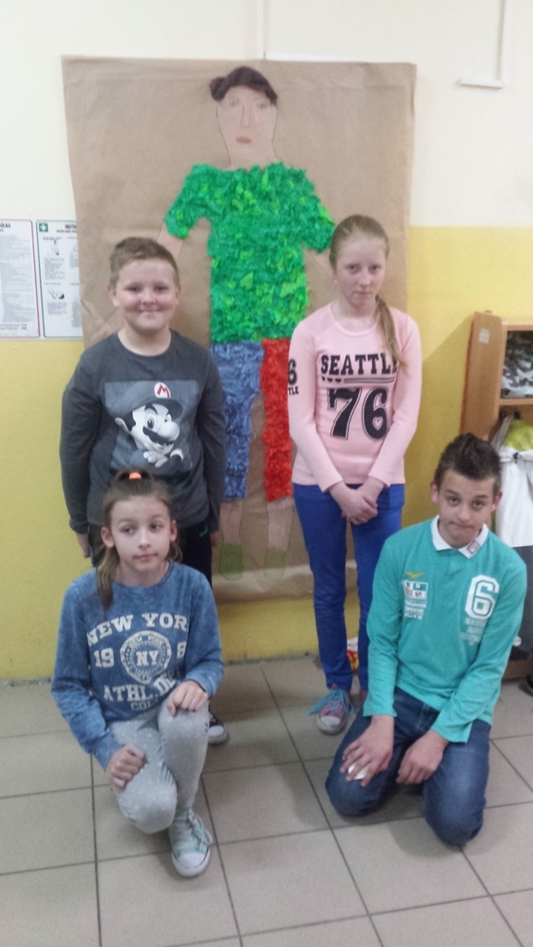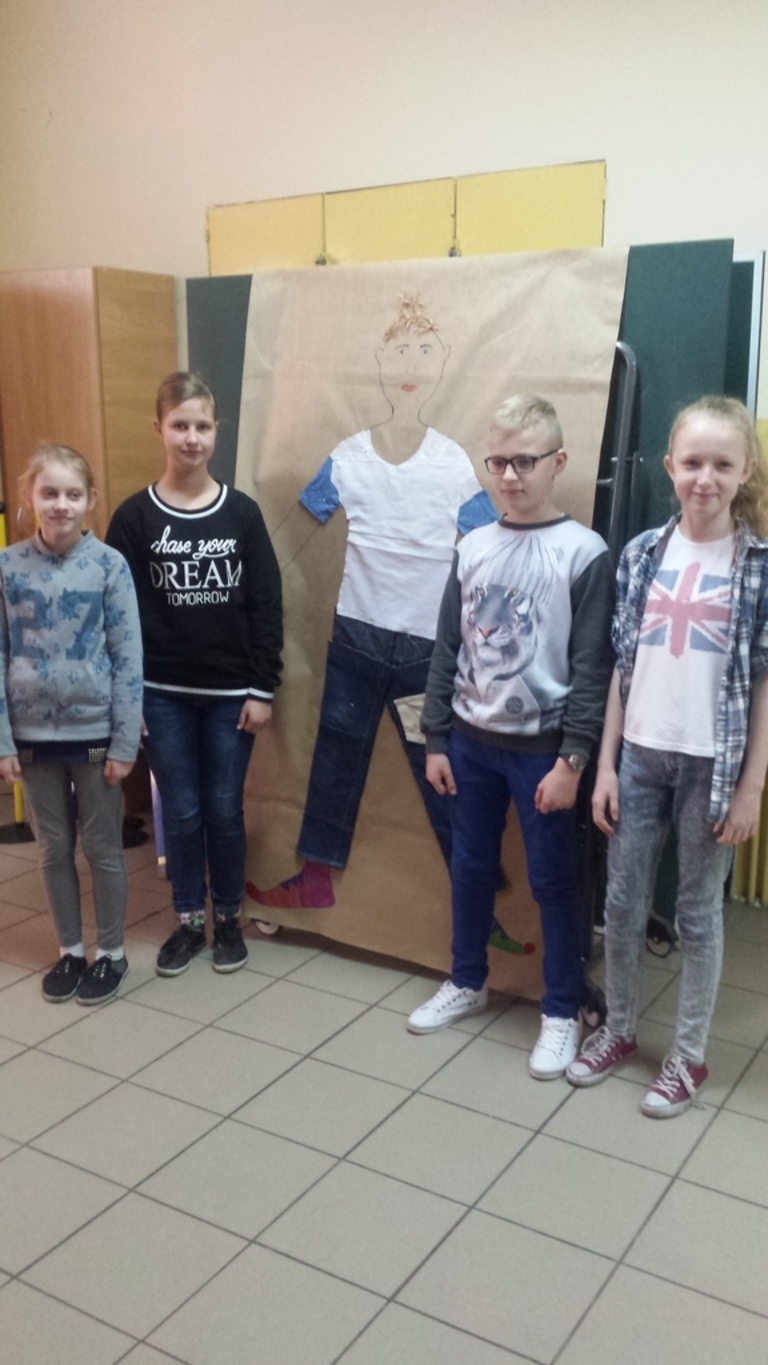 Podczas dzisiejszych zajęć plastycznych uczniowie klasy IV i VI stworzyli dowolną, wymyśloną przez siebie postać człowieka. Poniżej przedstawiamy efekty ich pracy.