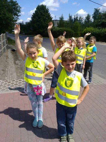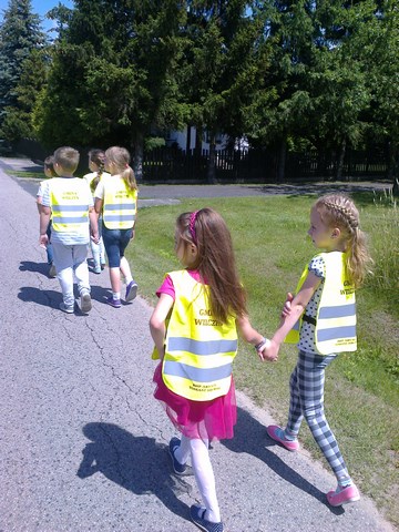 Dzisiaj rozmawialiśmy jak należy się zachowywać w czasie wakacji w lesie ,nad wodą ,w parku, na placu zabaw .Przypomnieliśmy ważne numery : 997,998,999 ,które mogą uratować życie poszkodowanym w losowej sytuacji lub wypadku. Później poszliśmy doskonalić zasady bezpiecznego przejścia przez jezdnię .Ten krótki spacer był bardzo ważny dla nas z innego powodu , ponieważ weszliśmy do naszego lasku i przypomnieliśmy sobie, że w lesie żyją zwierzęta i ptaki ,które boją się naszych hałasów .Oprócz tego musimy pamiętać o właściwym stroju ,by nas nie ukąsił komar czy kleszcz. Wracając zwróciliśmy uwagę na szczekające pieski w ogrodach i to też wykorzystaliśmy by nie podchodzić do nieznanych zwierząt .Przypomnieliśmy również sobie ,by nic nie brać od nieznajomych i z nimi nie rozmawiać .O takim zdarzeniu szybko poinformować