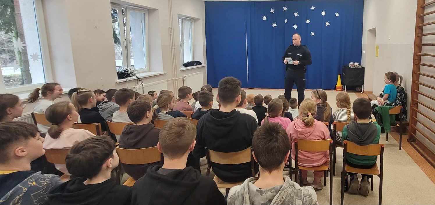 Przed feriami naszą szkołę odwiedził nasz dzielnicowy mł. asp. p. Bartosz Narożny. Podczas spotkania przypomniał nam bardzo ważne informacje związane z bezpieczeństwem podczas zimowych zabaw, w szczególności na zamarzniętym zbiorniku wodnym. Przy okazji wizyty Pana dzielnicowego porozmawialiśmy również, w związku ze zbliżającym się Dniem Bezpiecznego Internetu, o niebezpieczeństwach związanych z korzystaniem z internetu, mediów społecznościowych, ale także o hejcie w internecie, który jest niestety bardzo często występującym zjawiskiem.